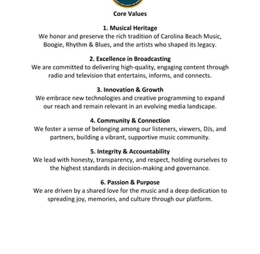 To be the world’s leading platform for preserving, celebrating, and sharing the timeless sounds and soulful spirit of Carolina Beach Music and its kindred genres—bringing people together through music, memories, and the magic of the coastal lifestyle. We envision a future where the rhythm of the beach lives on, inspiring new generations to dance, connect, and carry forward the legacy of this beloved tradition.