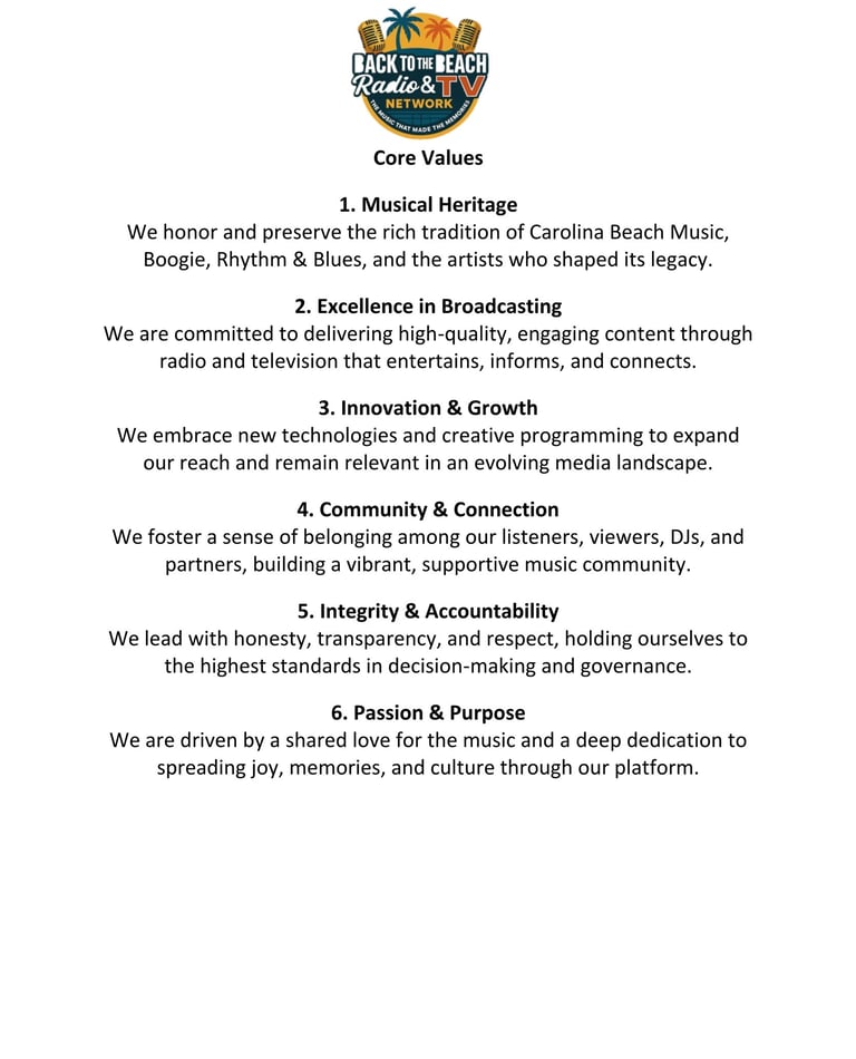Back to the Beach Radio & TV Network (Beach Music TV) is a heartfelt tribute to the golden sounds of Carolina Beach Music, blues, rhythm and blues, and soul. Our mission is to keep the memories alive—of warm summer nights, shag dancing by the ocean, and the timeless songs that became the soundtrack of a generation. Through classic performances, heartfelt stories, and a deep love for the music and culture that shaped it, we bring the past to life and share its magic with music lovers of today and tomorrow.